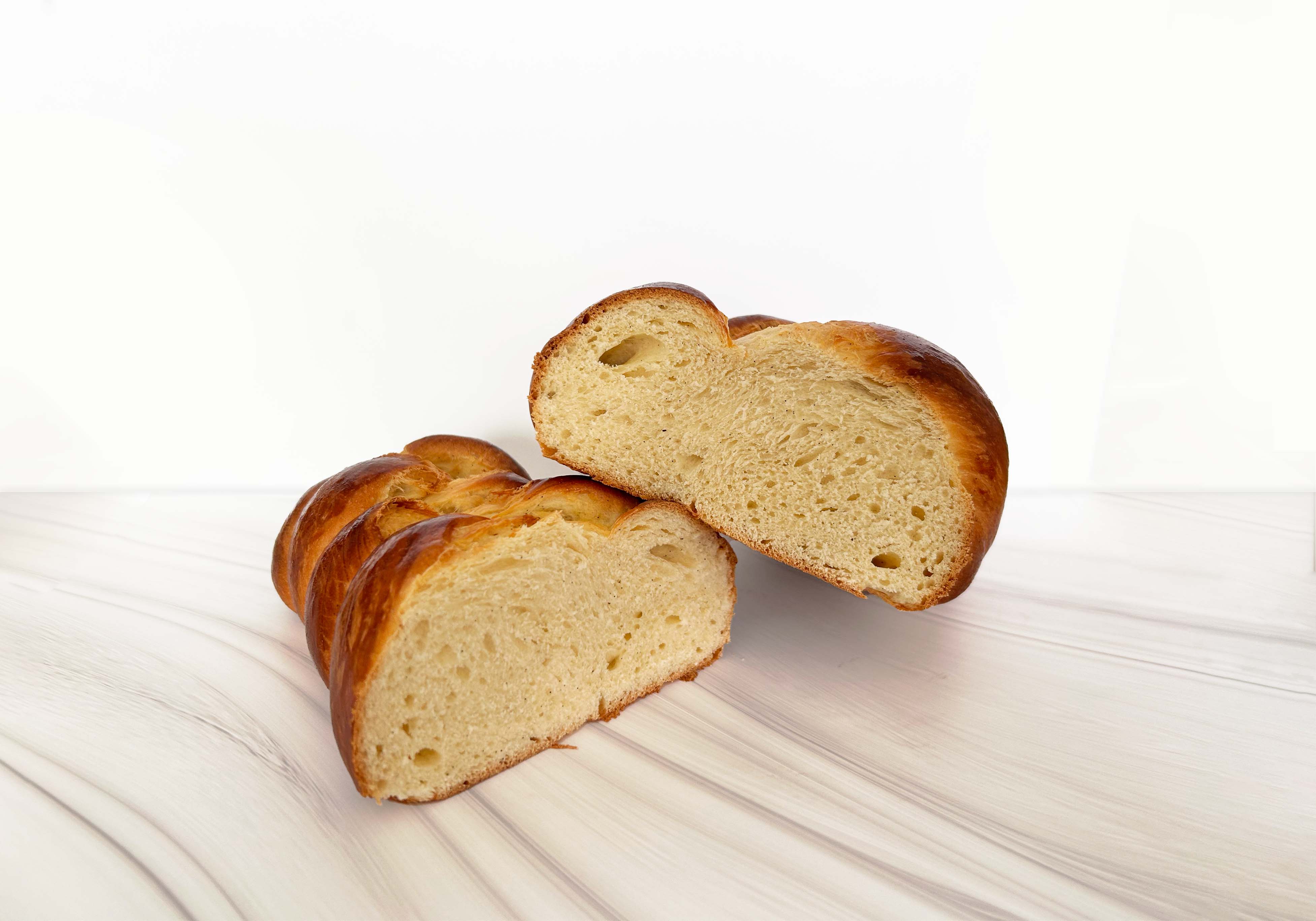 Une brioche tendre et fondante, subtilement parfumée à la vanille, avec une mie aérienne et une légère croûte dorée, parfaite pour un petit-déjeuner gourmand ou une pause sucrée irrésistible.